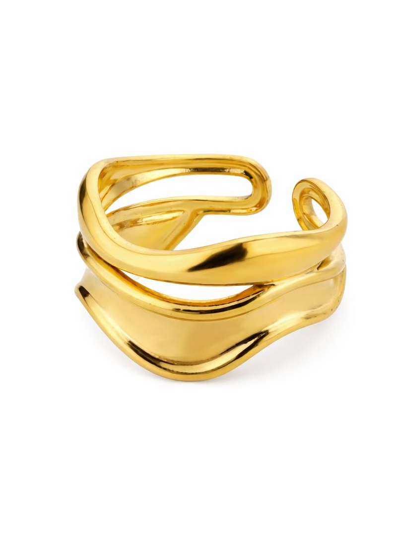 Sa finition dorée brillante capte la lumière et souligne ses lignes sculpturales. Moderne et affirmée, Nébula habille la main avec élégance et caractère.