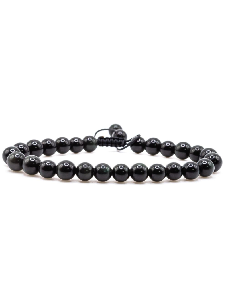 Bracelet en pierre naturelle d’Obsidienne 6mm, fin, discret et ajustable. Élégant et facile à porter au quotidien.
