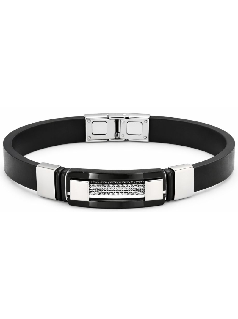 Le bracelet Spartan incarne la discipline et la puissance. Son design structuré associe un cuir noir lisse à des finitions en acier poli et un détail central texturé, créant un contraste moderne et affirmé.