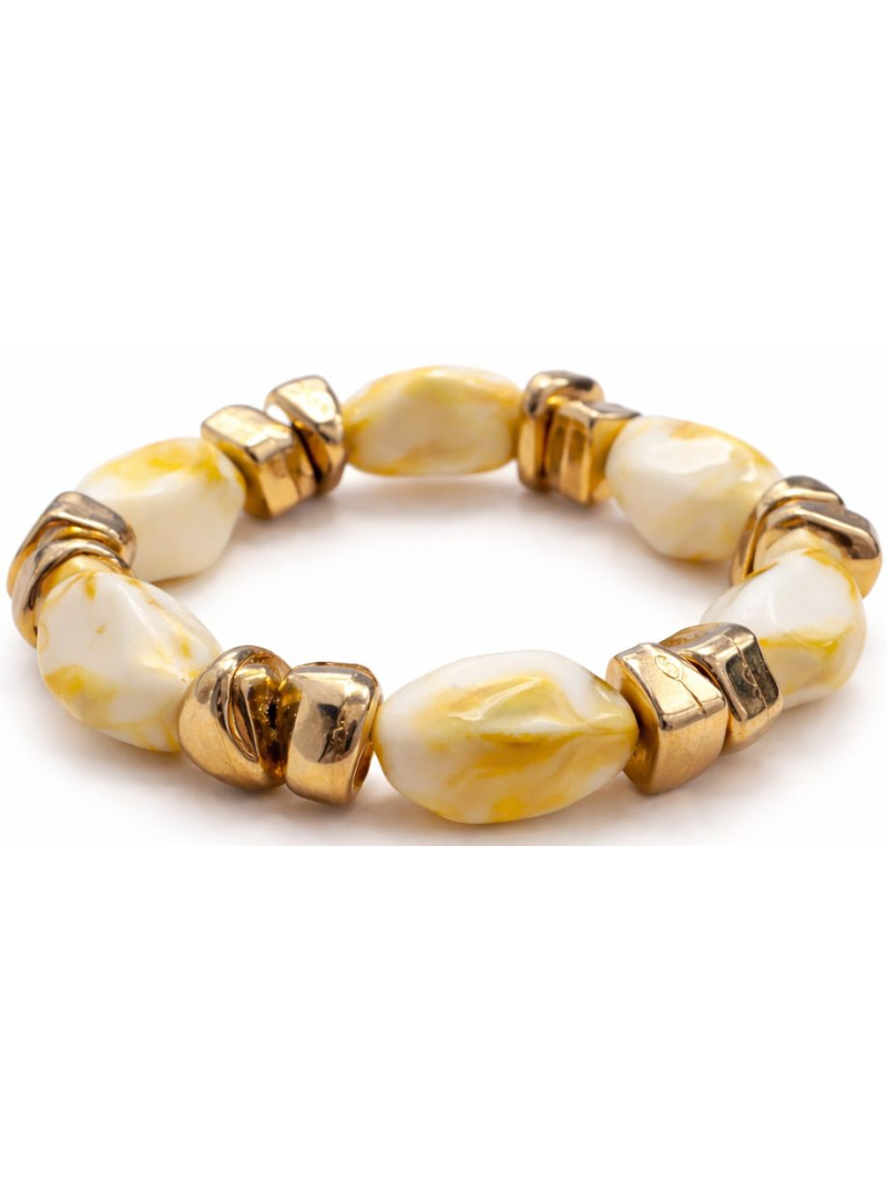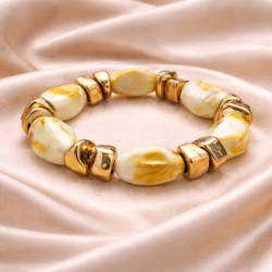 Réalisé en acrylique perlé, ce bracelet se décline en plusieurs nuances harmonieuses, allant de tons clairs et lumineux à des teintes plus chaudes et profondes. Ce jeu de couleurs et de reflets perlés lui permet de s’adapter facilement à différents styles et occasions.